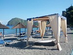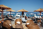 La spiaggia è elegantemente arredata con divani, lettini e gazebo, ideali anche per aperitivi al tramonto.