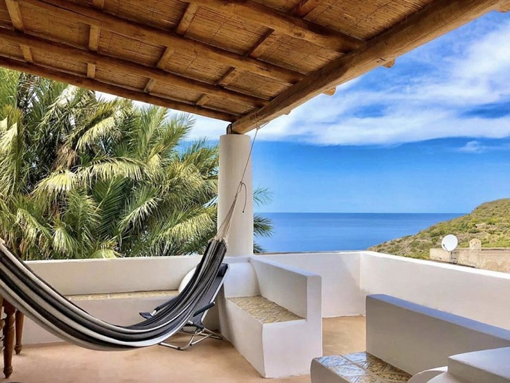 Il casale, fedelmente ristrutturato, si affaccia ad ovest sul mare a perdita d'occhio facendo scorgere le splendide sagome delle isole di Alicudi e Filicudi.