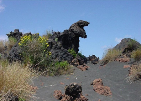 The Valley of the Monsters - in Vulcanello. It is advisable to dawn or at sunset when the twilight makes it more suggestive and enigmatic forms evoked from the rocks. And 'the name given to a black sand slope as dotted here and there, volcanic rocks whose shapes suggest provocative profiles of prehistoric animals, monsters or exhibitions (among others recognize a bear standing on its hind legs and a crouching lion).