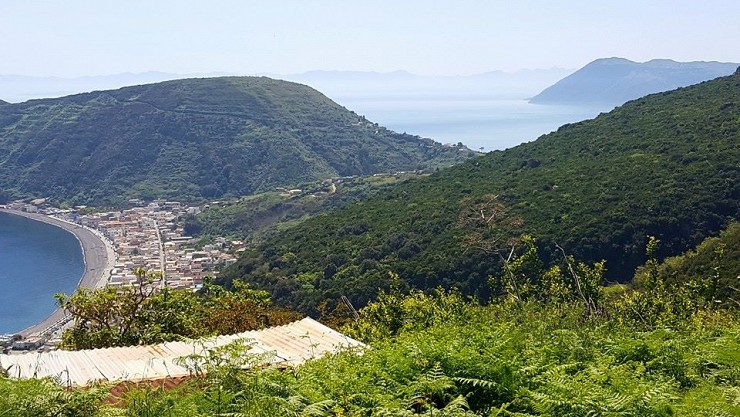 L'ultima grande eruzione di Monte Pelato, 1400 anni fa, ha disperso spessi strati di pomici su buona parte dell'isola, culminando con la formazione di una colata riolitica di ossidiane (le Rocche Rosse) che si prolunga in direzione Nord-Est e termina sul mare a Punta Castagna. Arrampicandosi lungo quest'ultima, il sentiero regala le emozioni di trovarsi davanti a un panorama unico, che abbraccia la costa di Acquacalda, le cave di pomice (chiuse nel 2007) e la folta macchia insediatasi all'interno della depressione craterica (Fossa Castagna), interrotta ogni tanto da vigneti e coltivi. Si prosegue attraversando il borgo collinare di Lami e, lungo una strada in pietra, scendendo fino alla spiaggia di Canneto.